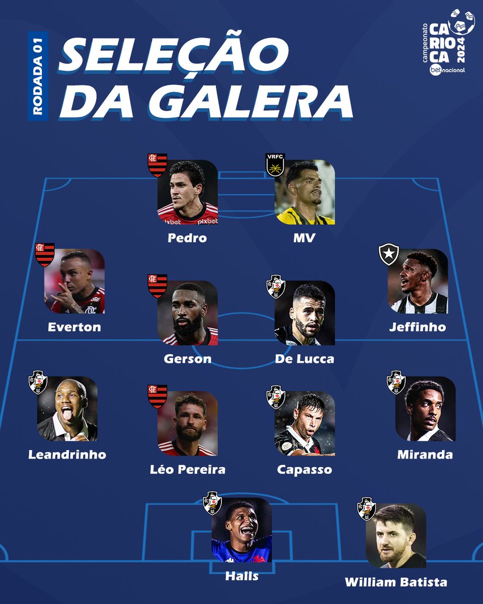 Halls, Miranda, Capasso, Leandrinho, De Lucca e William Batista estão na #SeleçãoDaGalera da 1ª rodada do Carioca