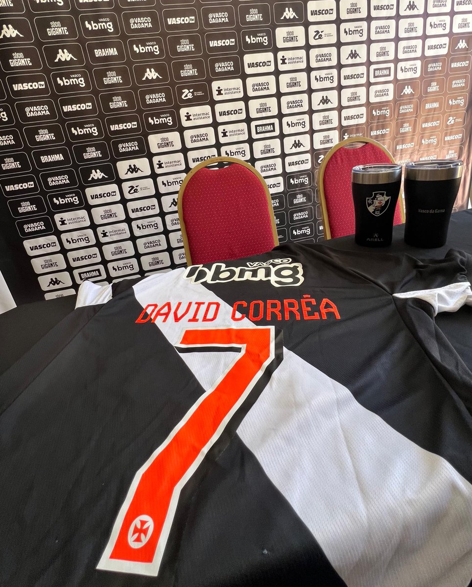 O atacante David está sendo apresentado oficialmente pelo Vasco neste momento, no Uruguai.
