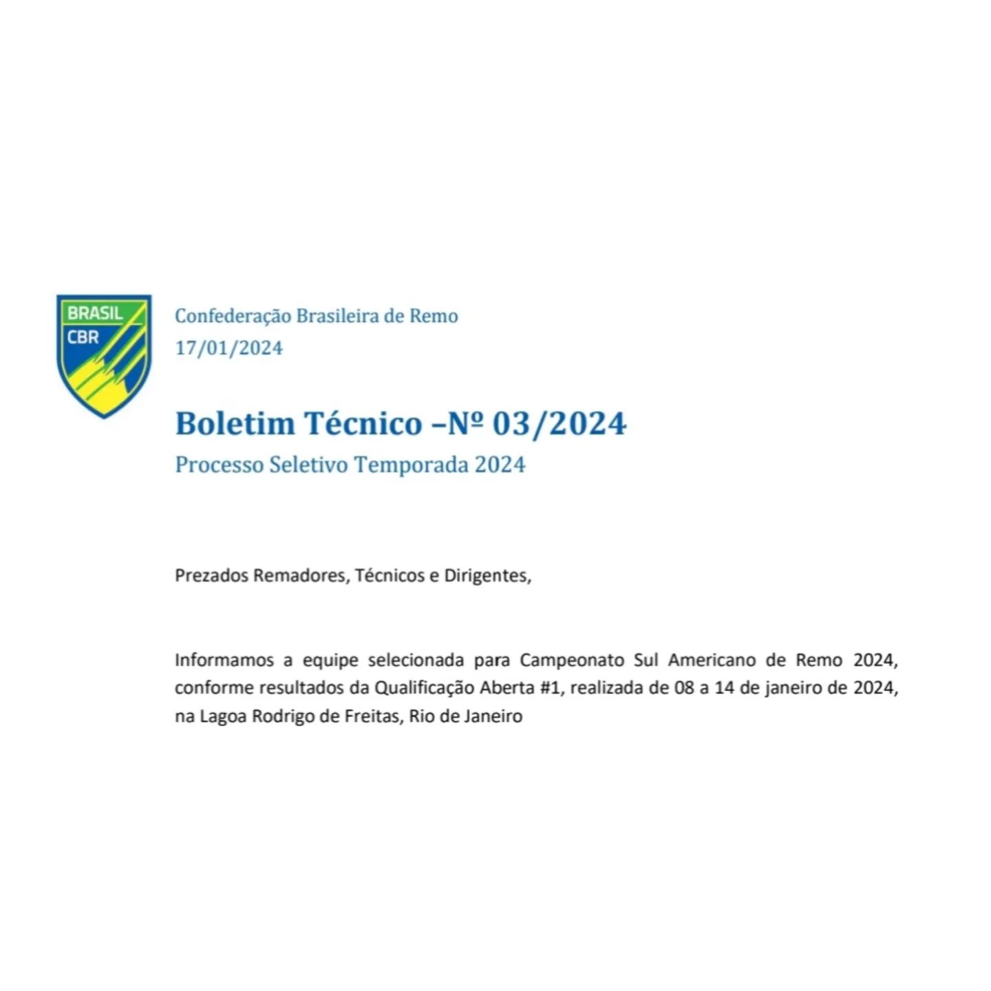 Após a Seletiva Nacional realizada na raia olímpica da Lagoa Rodrigo de Freita, os atletas Marlon e João Gustavo que disputaram o 2- Junior A, foram selecionados para a disputa do Sul-americano e irão compor o barco 4-.