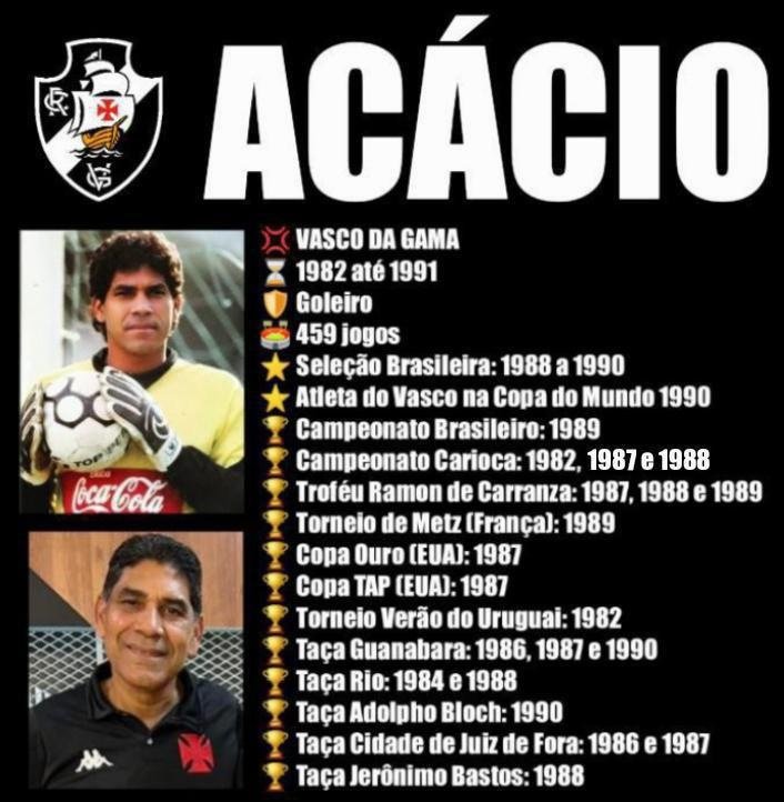 Hoje é aniversário do ídolo Acácio (65 anos), um dos maiores goleiros da história do Vasco da Gama! Defendeu a cruz de malta em mais de 400 jogos e garantiu muitas vitórias, principalmente o título Brasileiro 89, uma das grandes atuações de um goleiro em final de Campeonato. 🎂💢