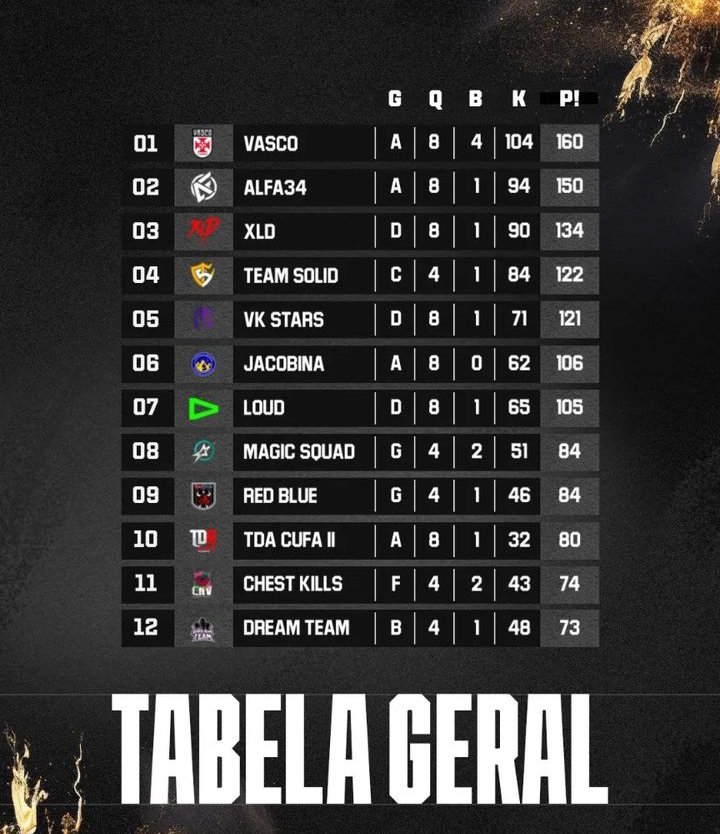 E assim ficou a tabela da Gold League! Vascão na liderança após um dia fantástico!