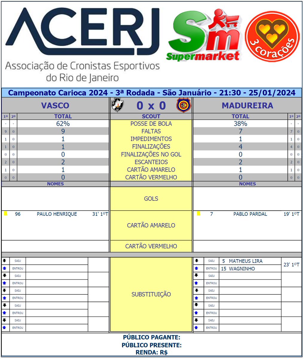 Scout do 1º Tempo de Vasco e Madureira pela 3ª Rodada do Campeonato Carioca 2024 em São Januário #Acerjinforma #Cariocao #VASxMAD #Vasco #MadureiraEC @Cariocao @VascodaGama @MadureiraEC_BR