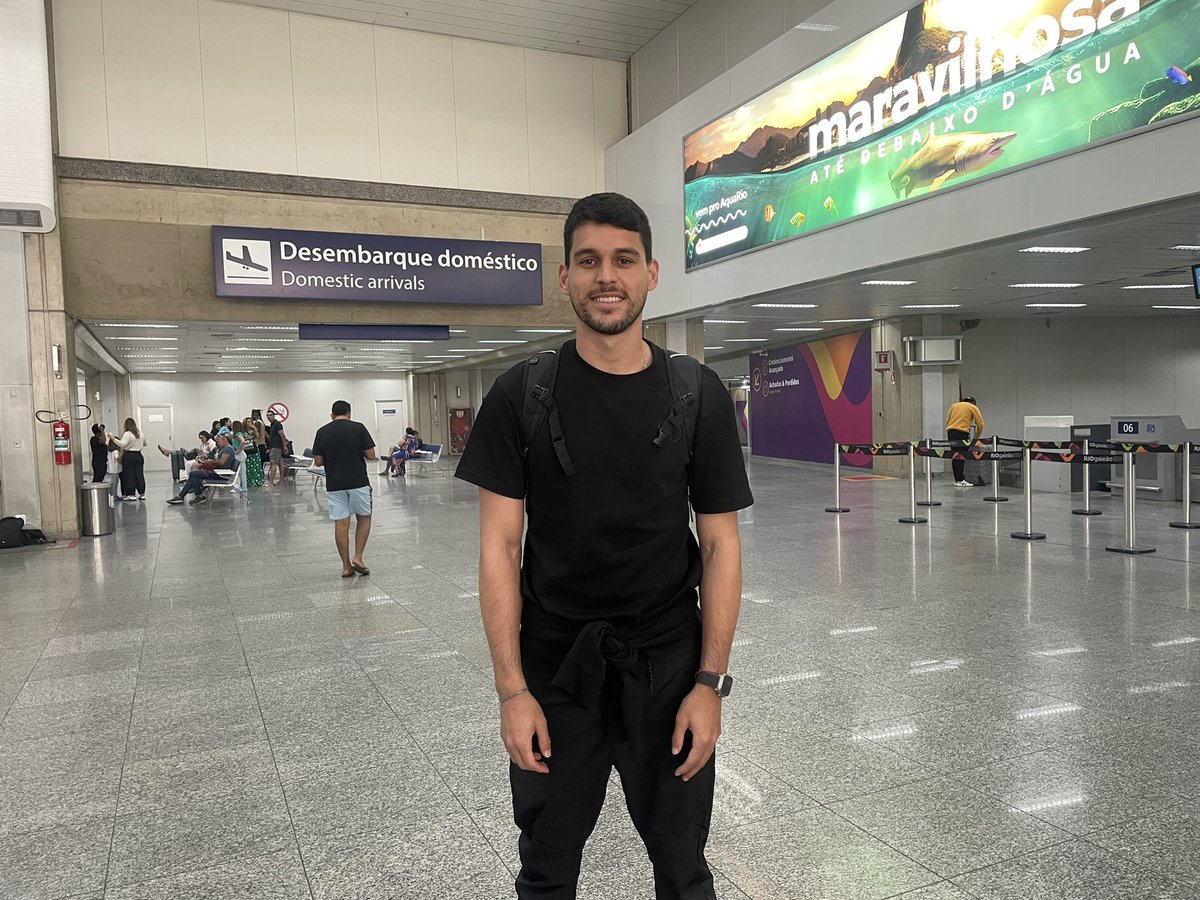 Goleiro Keiller desembarca no Rio de Janeiro.