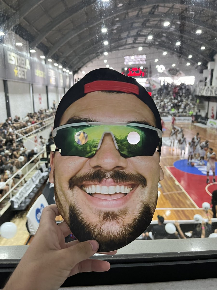 Ortega preparou diversas máscaras para distribuir aos torcedores presentes no ginásio de São Januário! 🏀💢