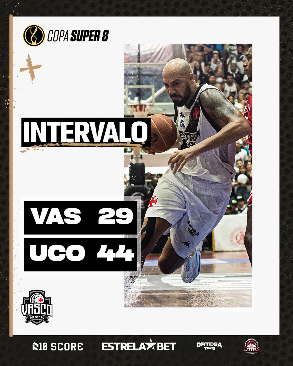 Após péssimo início de jogo, Vasco melhora, mas segue sentindo a partida. Desempenho bem abaixo do normal, muitos erros individuais e marcação pouco eficiente. Marquinhos é o maior pontuador vascaíno até aqui.