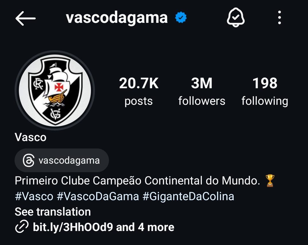 📲 | O gigante Club de Regatas Vasco da Gama atingiu a marca de 3 milhões de seguidores no Instagram.