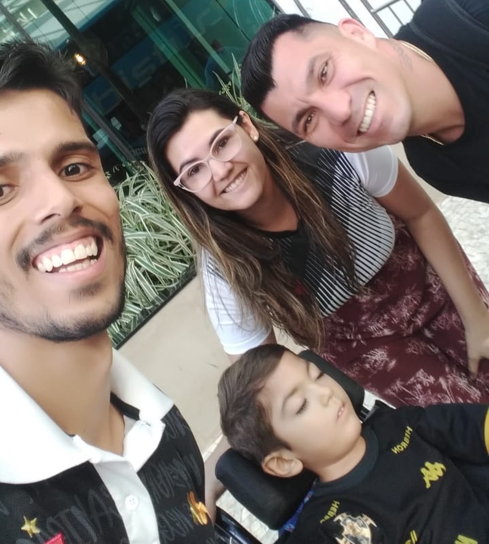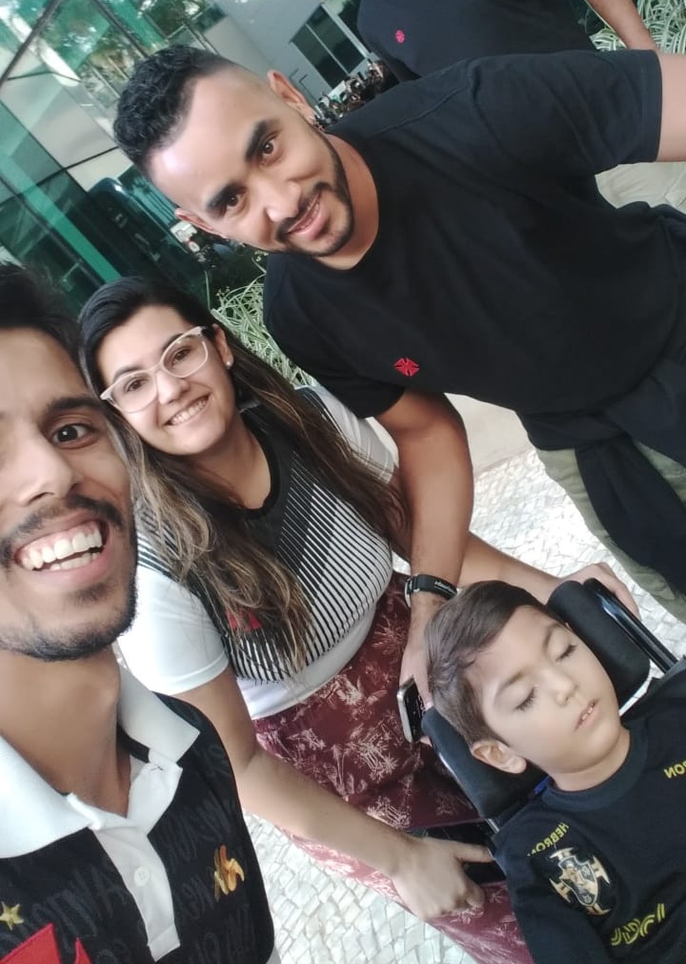 Torcedor leva filho com doença rara a hotel do Vasco em Uberlândia e é recebido pelos jogadores