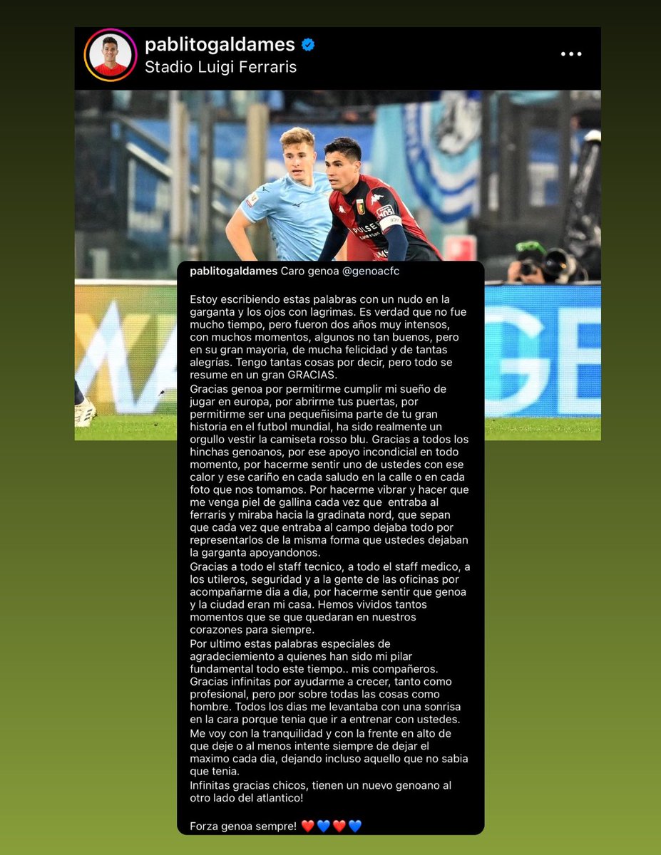 Próximo do Vasco, Galdames se despede do Genoa; veja