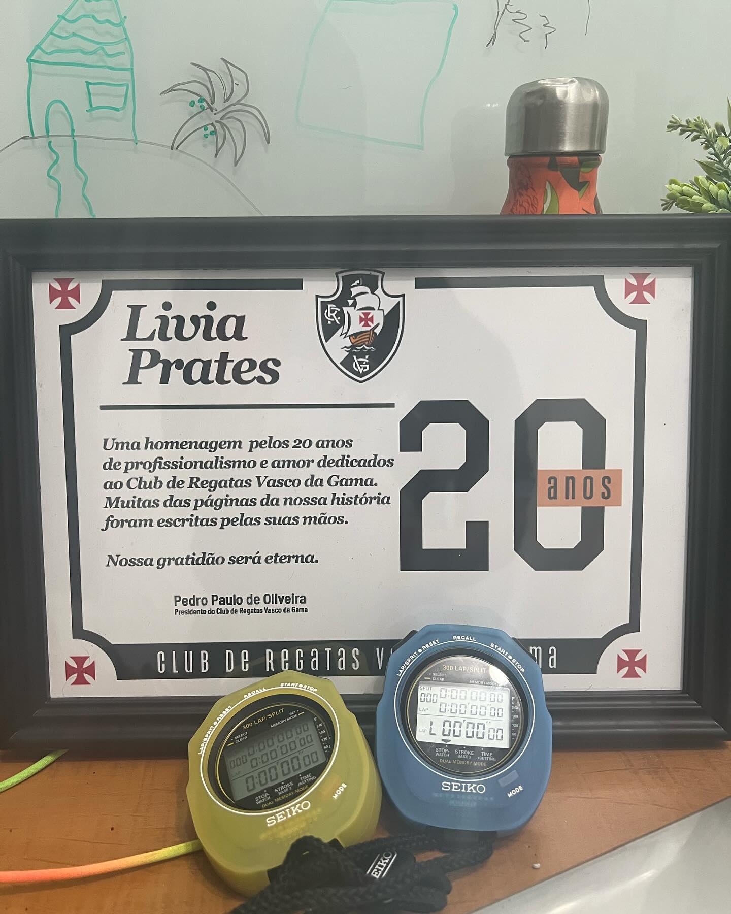 Coordenadora do Paradesporto, Lívia Prates recebe placa pelos 20 anos de trabalho no Vasco