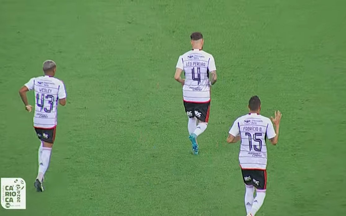 INFORMAÇÃO | O Flamengo retornou para o segundo tempo com o uniforme branco, tendo substituído o vermelho, usado no primeiro tempo.