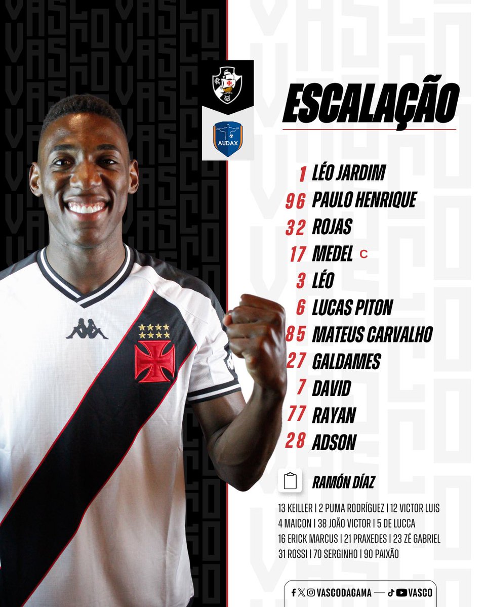 Confira a escalação do Vasco para o jogo contra o Audax; titular, Galdames fará sua estreia