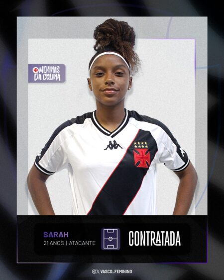 Sarah tem 22 anos e passou pelo Vasco em 2022, permanecendo por quase um ano no Gigante da Colina. Antes de retornar, ela estava no Perólas Negras.