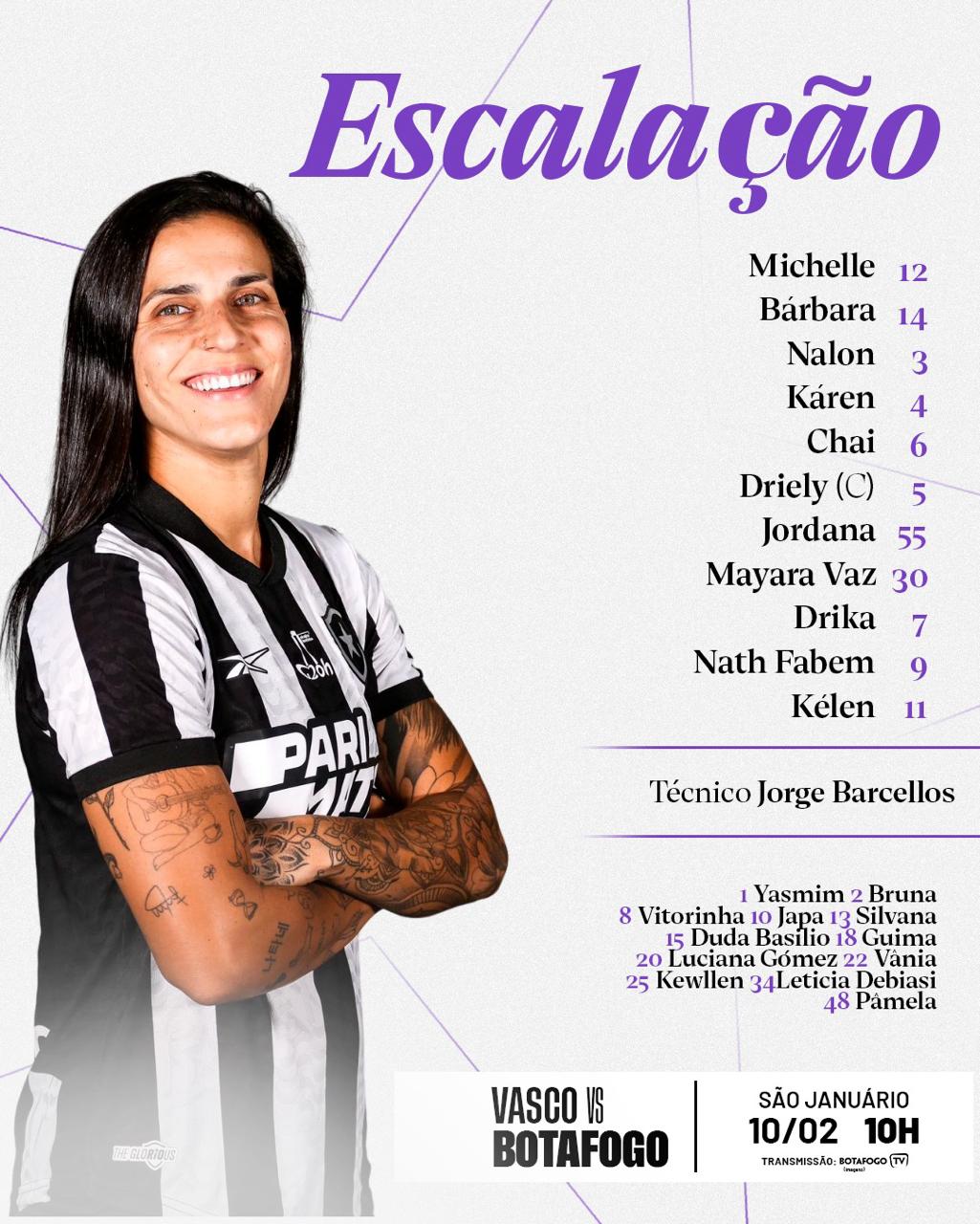 10/02/24 - Feminino: Confira a escalação do Vasco para o jogo contra o Botafogo