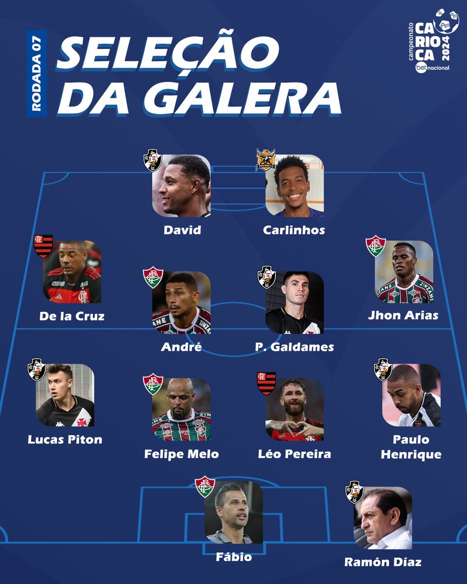 Olha a #SeleçãoDaGalera aí gente! Vocês votaram e esses foram os eleitos da sétima rodada do #CariocaBetNacional! 🎉