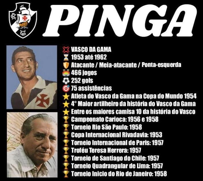 11/02/1924 - Centenário do nascimento do Lendário José Lázaro Robles, o ídolo Pinga! Um dos maiores jogadores e artilheiros da história do Vasco da Gama, por quase uma década defendeu a camisa cruzmaltina com maestria! Foi treinador vascaíno em 1969. Era paulista e faleceu 1996.