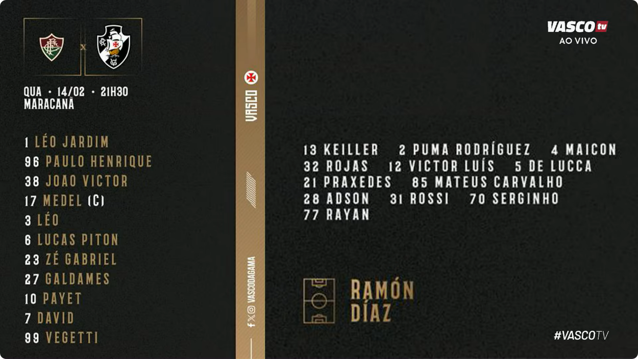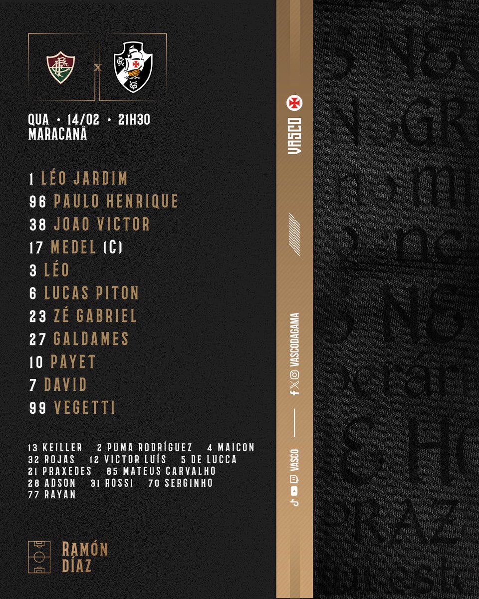 Confira a escalação do Vasco para o jogo contra o Fluminense; Vegetti é titular
