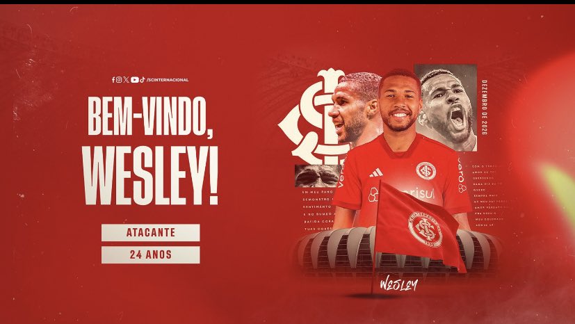 O atacante Wesley, ex-Palmeiras e Cruzeiro, é o novo reforço do Internacional.