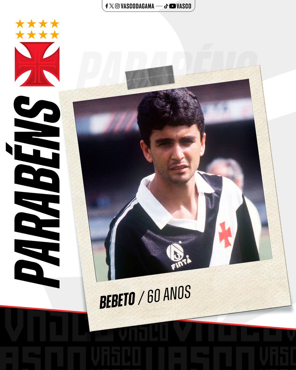 Vasco parabeniza Bebeto, aniversariante do dia: 'Feliz aniversário, artilheiro e ídolo!'