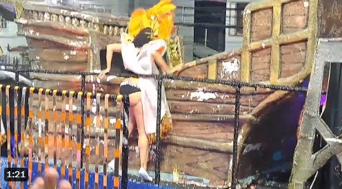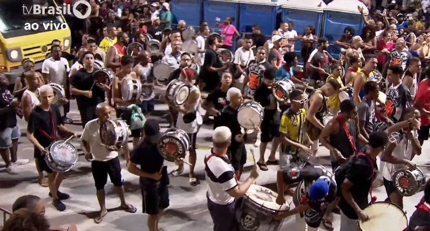 O desfile da Força Jovem está bem bonito, porém, baianas e bateria apareceram sem fantasias.