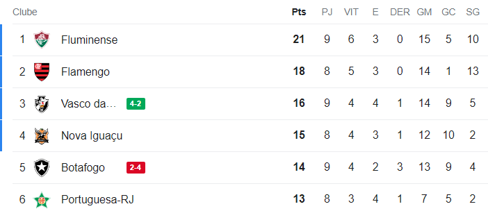 A vitória sobre o Botafogo deixou o Vasco no G4 da Taça Guanabara. O Gigante da Colina só não terminará a 9ª rodada entre os 4 primeiros colocados se os dois resultados abaixo acontecerem: