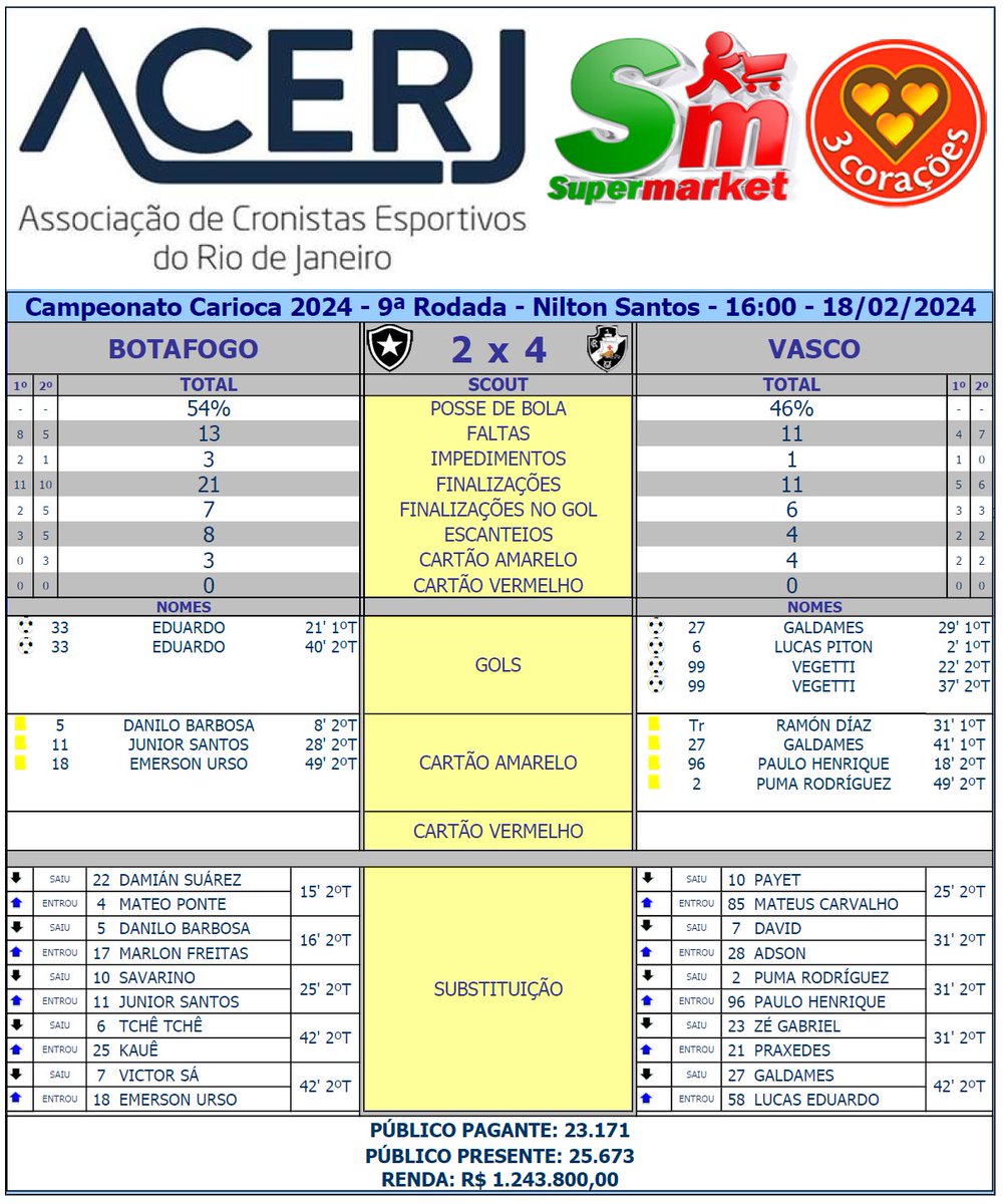 Scout Final de Botafogo e Vasco pela 9ª Rodada do Campeonato Carioca 2024 no Nilton Santos #Acerjinforma #Cariocao #BOTxVAS #Botafogo #Vasco @Cariocao @Botafogo @VascodaGama