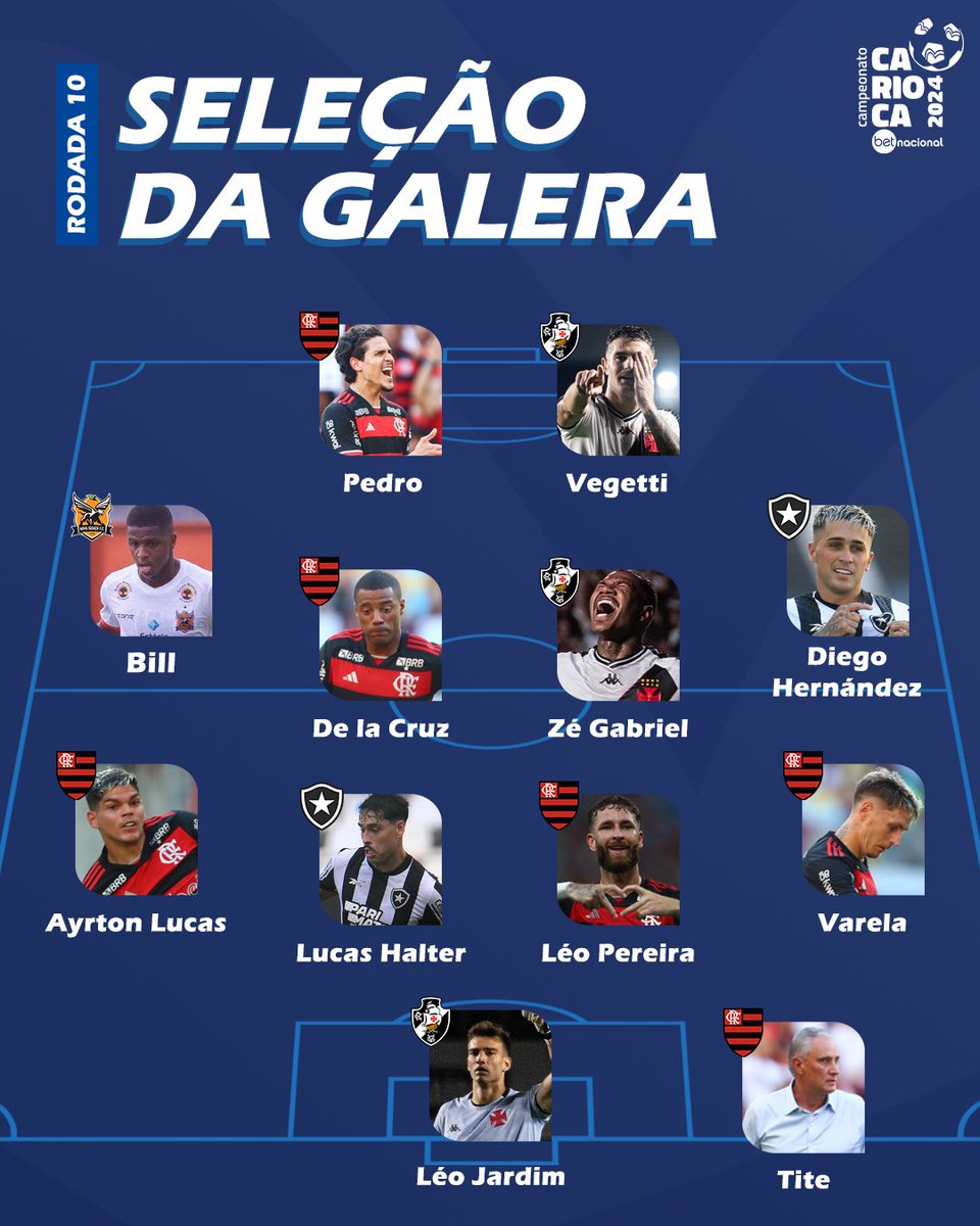 Léo Jardim, Zé Gabriel e Vegetti entram na #SeleçãoDaGalera da 10ª rodada do Carioca