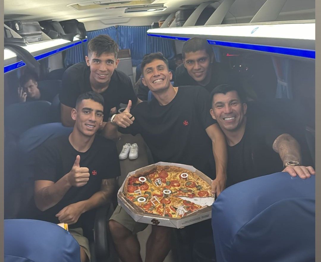 Estrangeiros do Vasco postam foto com pizza após classificação contra o Marcílio Dias