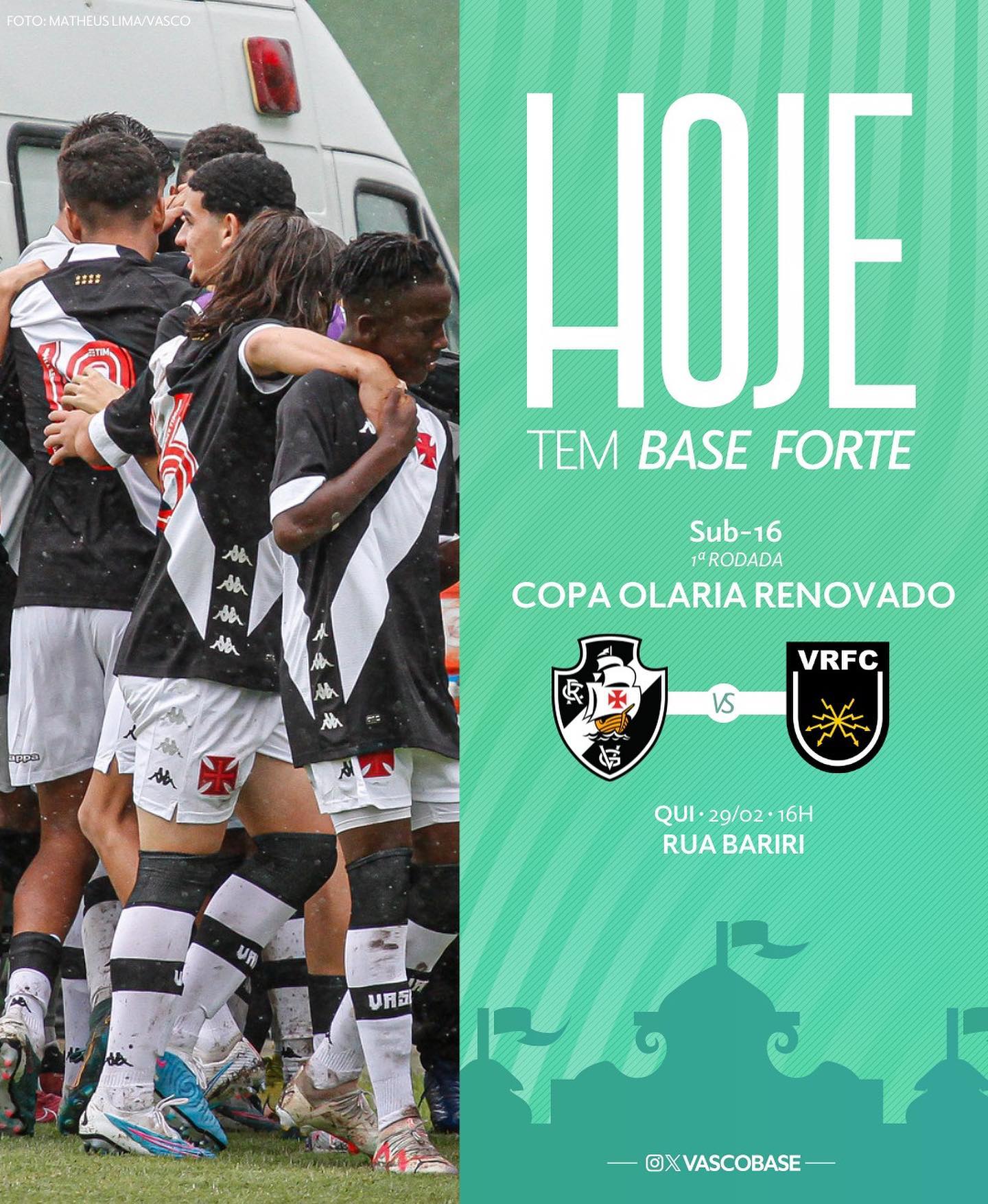 Vasco enfrenta o Volta Redonda pela Copa Olaria Renovado Sub-16 nesta 5ª às 16h e o Goiás pela Copa do Brasil Sub-17 às 20h