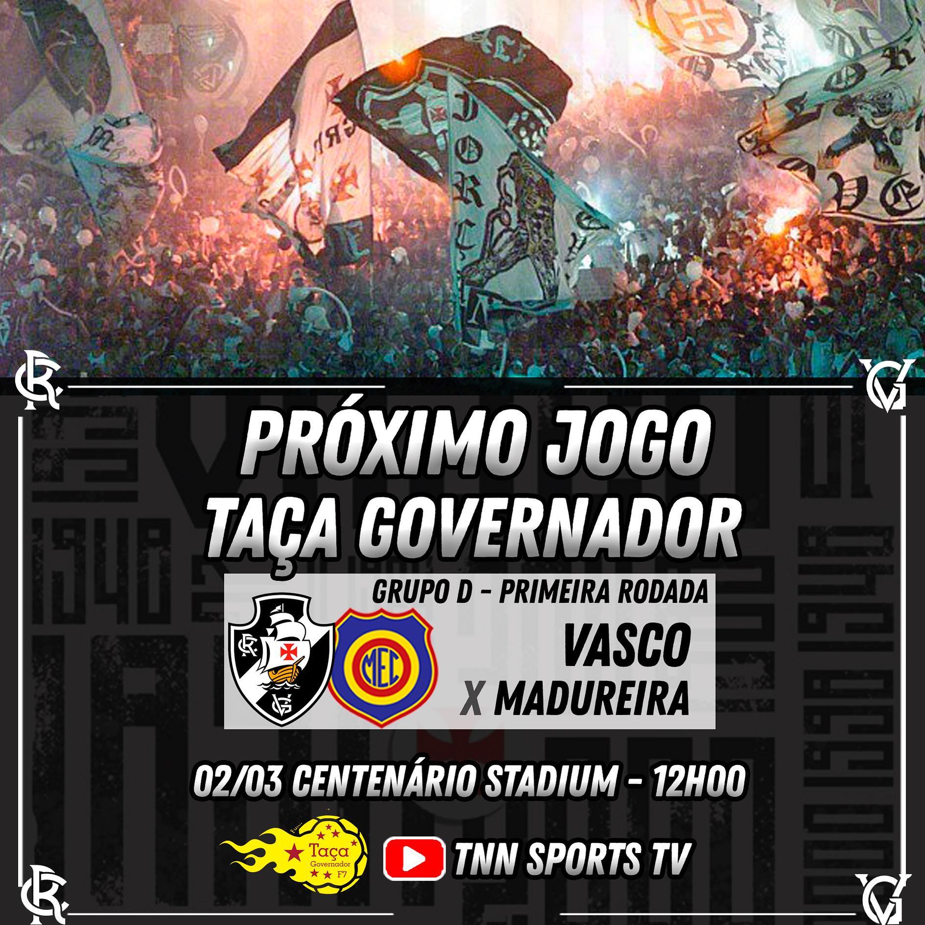 Contamos com seu apoio, torcedor vascaíno! A partida terá transmissão ao vivo na TNN Sports TV, no Youtube. 💢