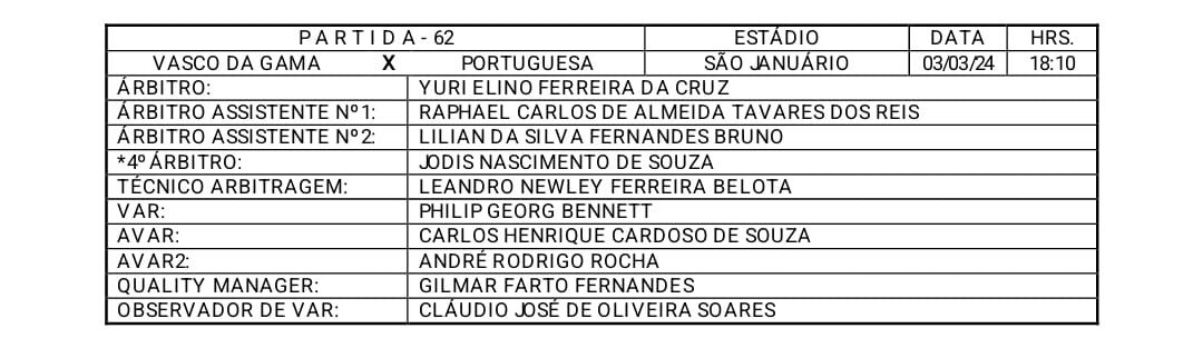 ATENÇÃO! Yuri Elino Ferreira será o árbitro da partida decisiva entre Vasco e Portuguesa.