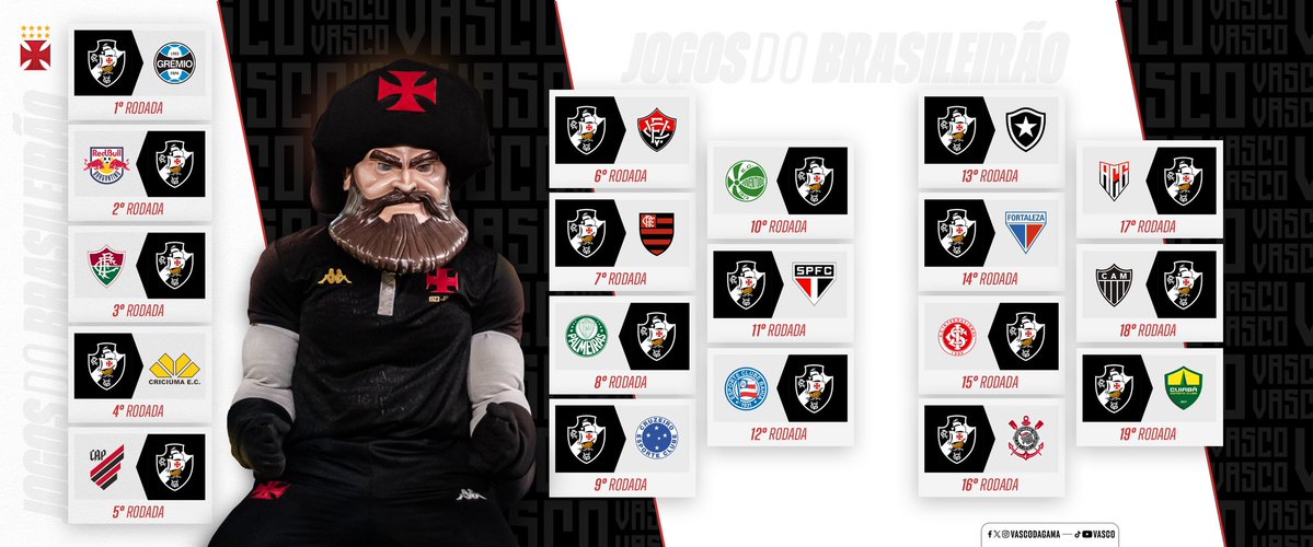 Vasco publica sua tabela de jogos do 1º turno do Campeonato Brasileiro