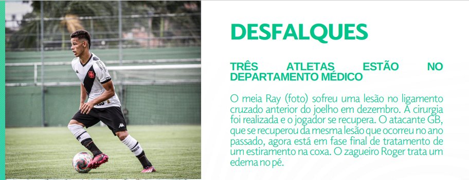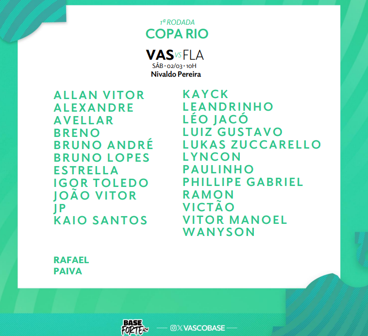 Vasco divulgou os relacionados para o duelo sub-20 no 'Guia da Partida'.