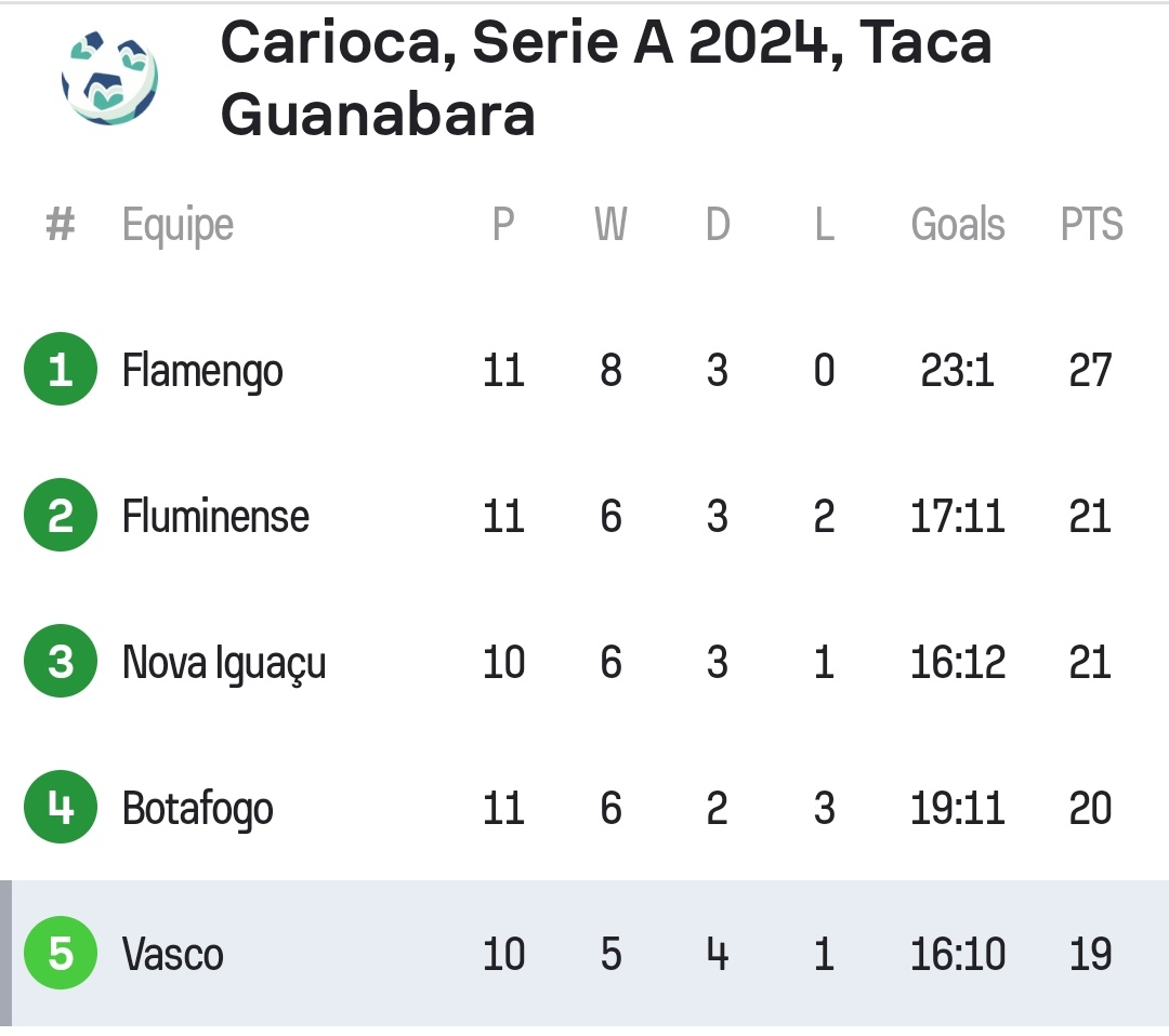 Se o VASCO vencer a Portuguesa, e o Nova Iguaçu pontuar, teremos VASCO X Nova Iguaçu nas semifinais do Carioca.