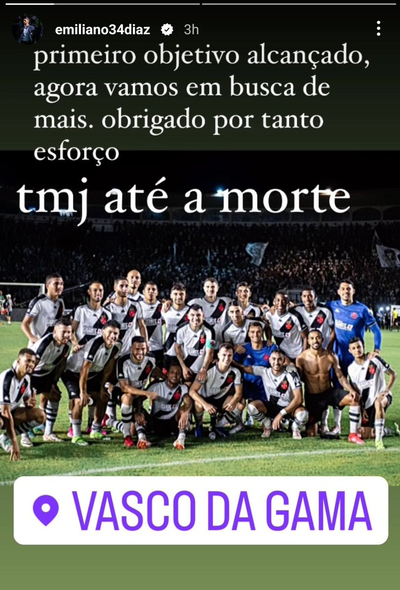 Emiliano Díaz publica foto do elenco do Vasco: 'TMJ até a morte'