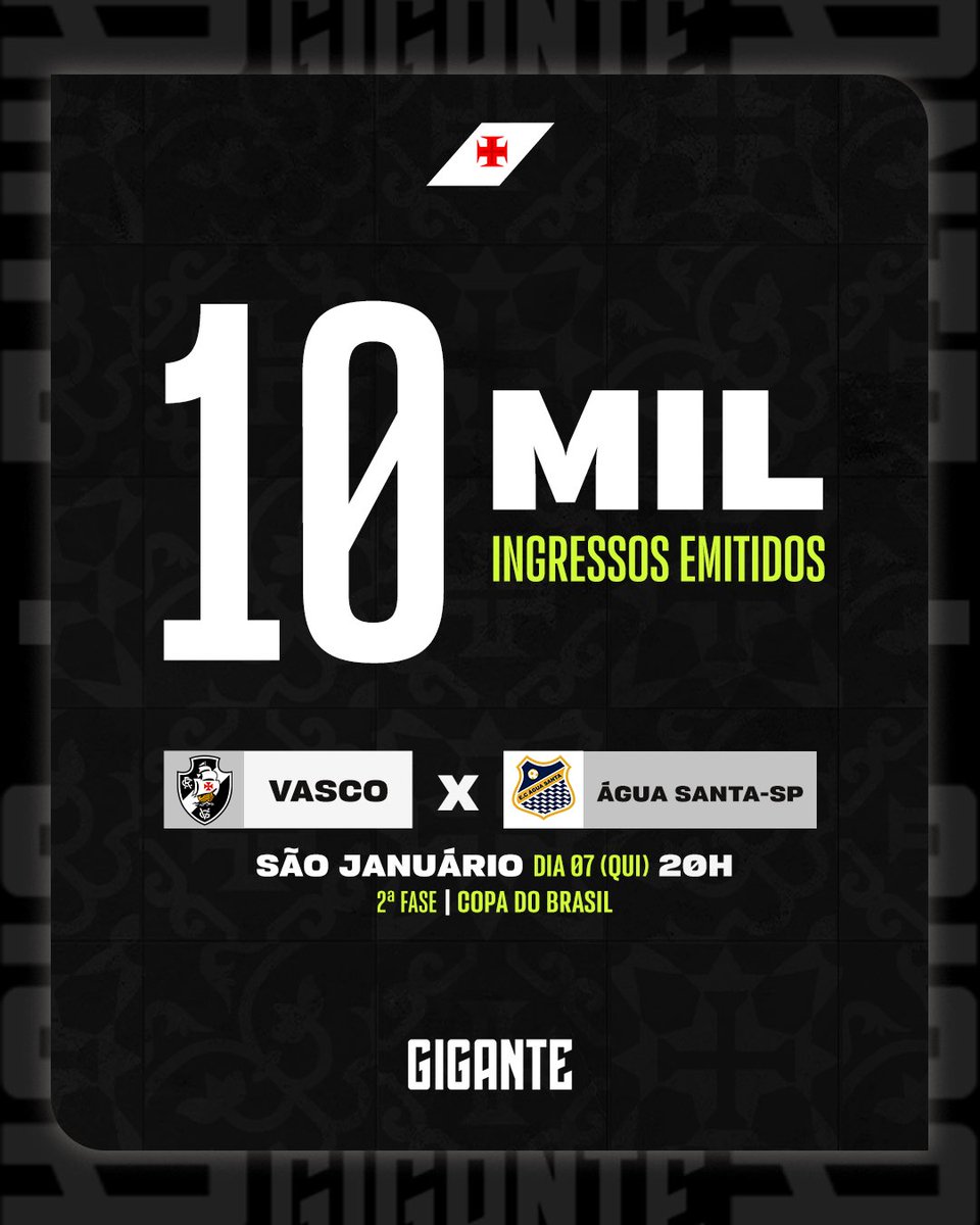Já foram emitidos 10 mil ingressos para Vasco x Água Santa