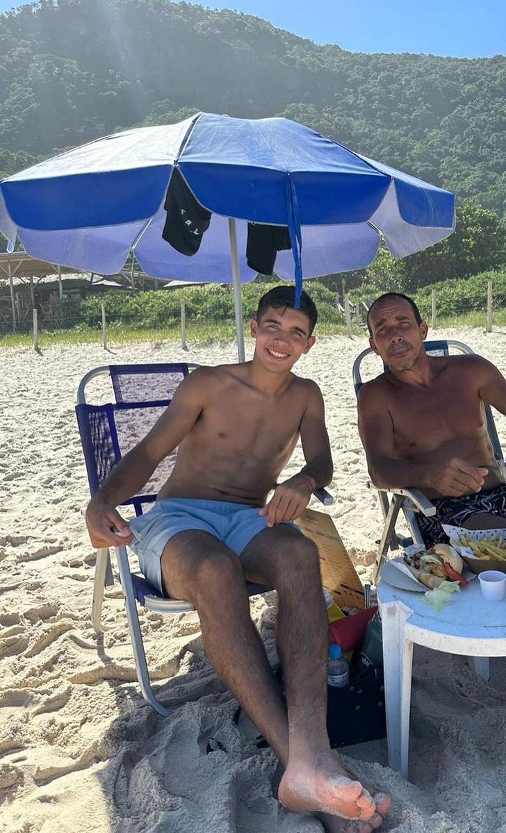 Sforza aproveita a folga e vai à praia com o pai; veja foto