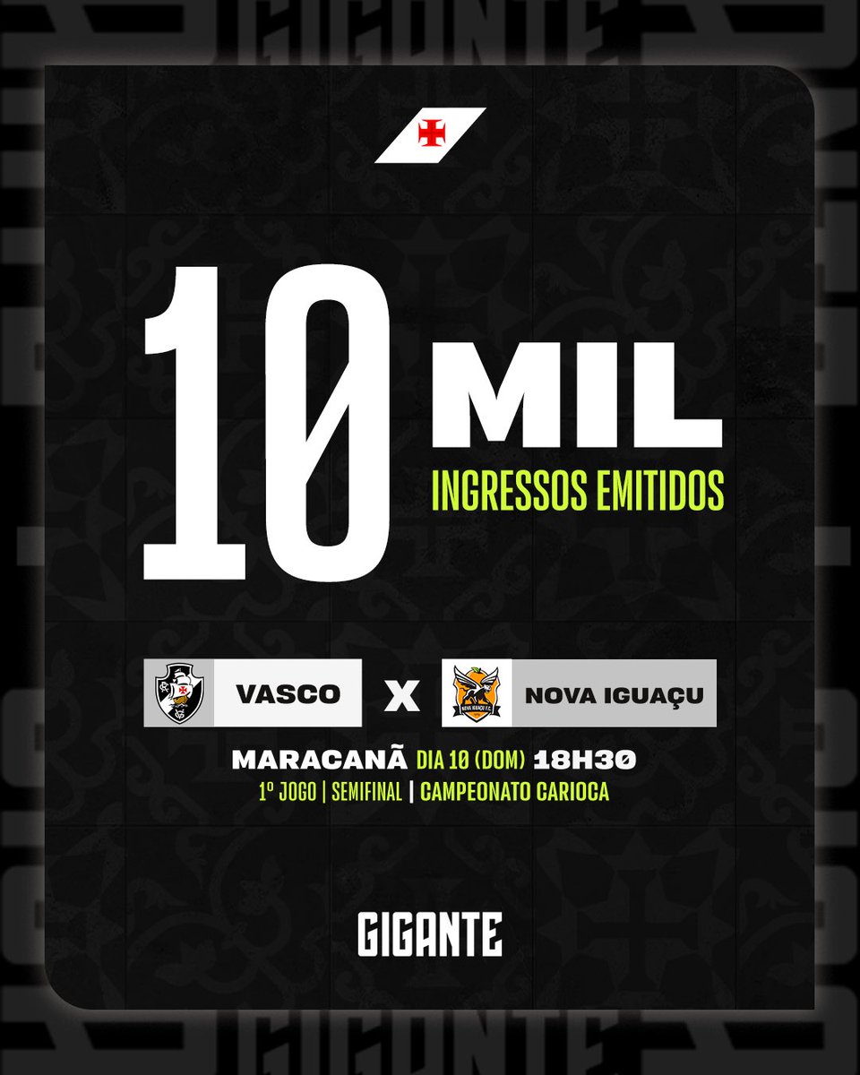 Já foram emitidos 10 mil ingressos para Vasco x Nova Iguaçu