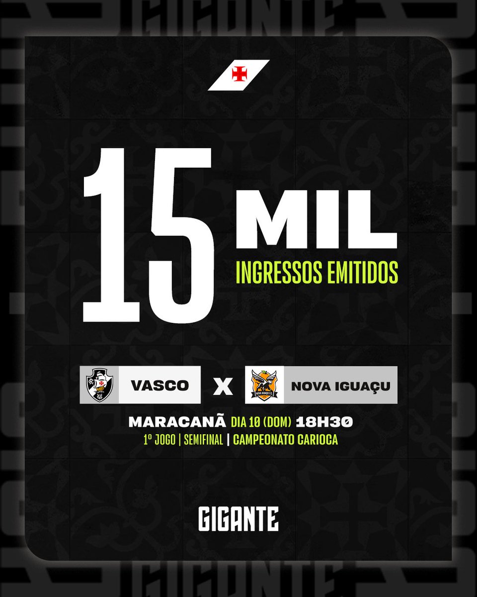 Já foram emitidos 15 mil ingressos para Vasco x Nova Iguaçu