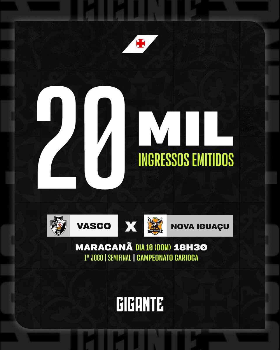 Já foram emitidos 20 mil ingressos para Vasco x Nova Iguaçu