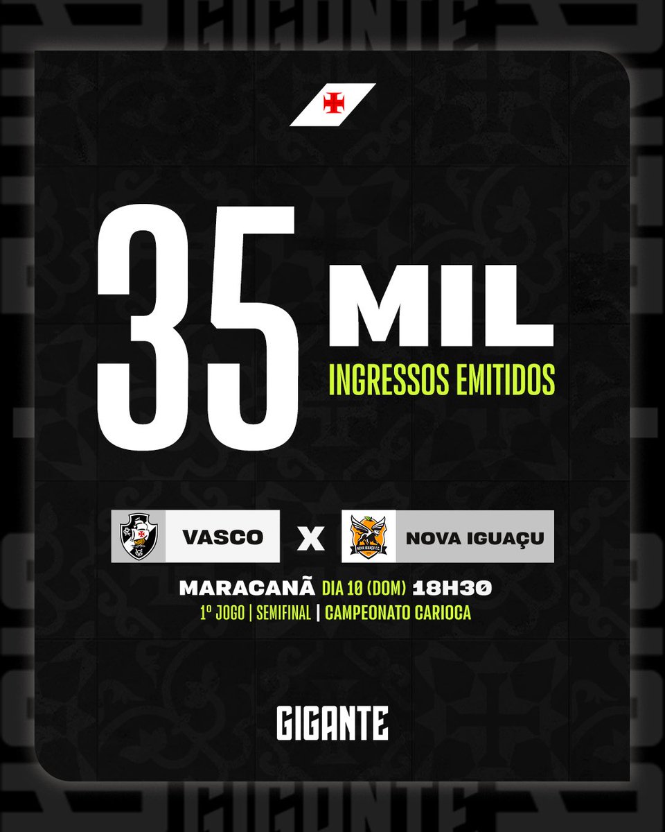 Já foram emitidos 35 mil ingressos para Vasco x Nova Iguaçu