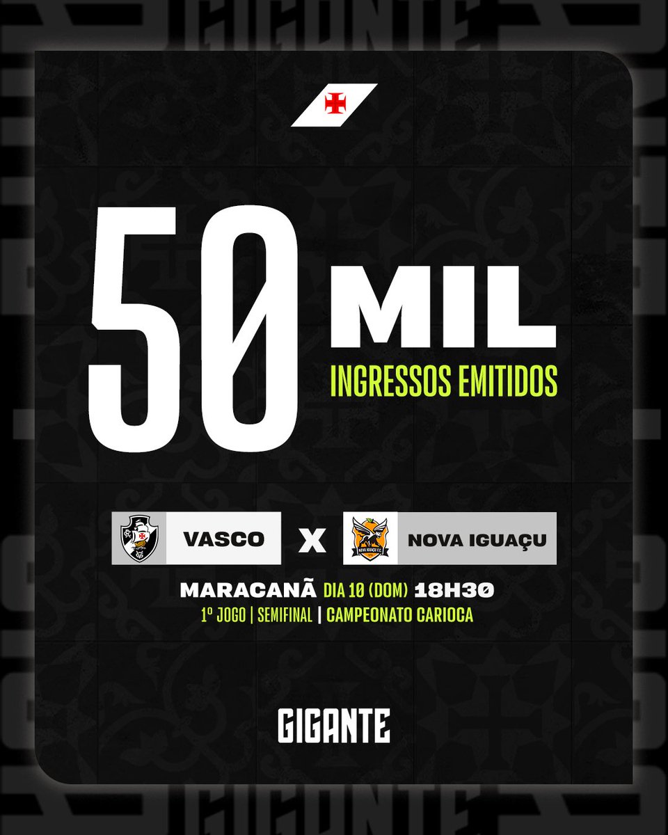 Já foram emitidos 50 mil ingressos para Vasco x Nova Iguaçu