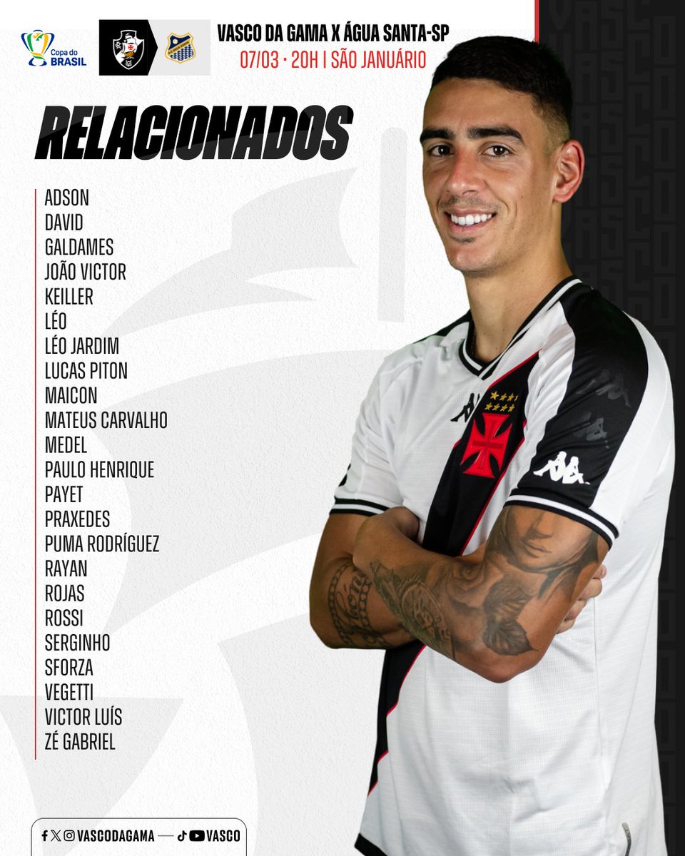 📋 Relacionados para Vasco x Água Santa-SP pela Segunda Fase da Copa do Brasil💢