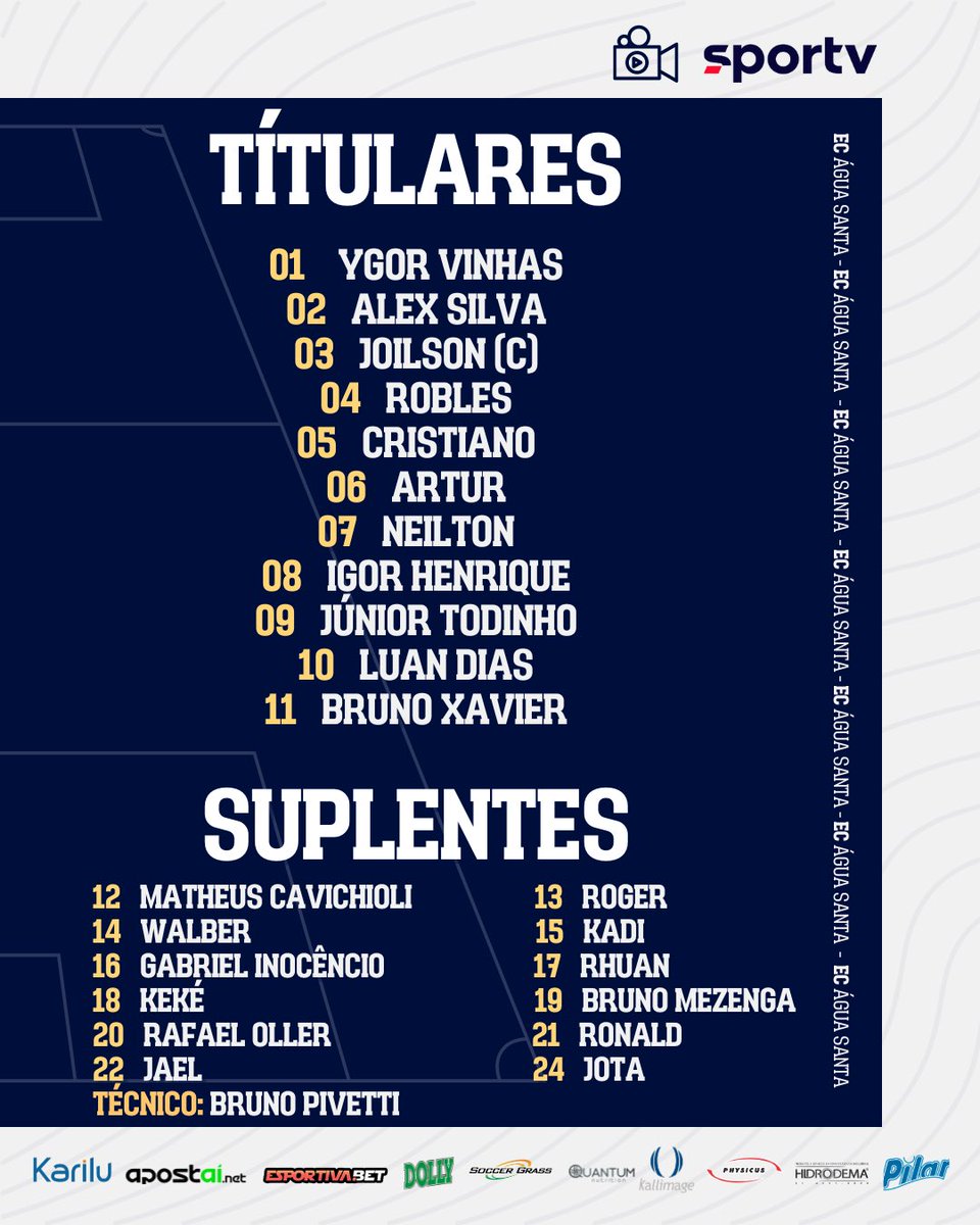 Veja a escalação do Água Santa para o jogo contra o Vasco; ex-vascaíno Walber é opção no banco
