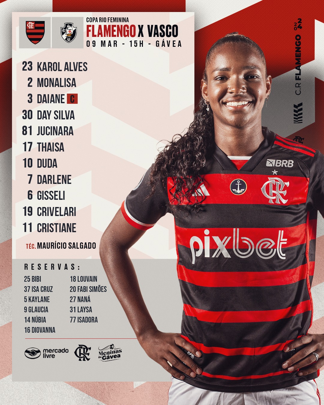 Feminino: Veja a escalação do Urubu para o jogo contra o Vasco