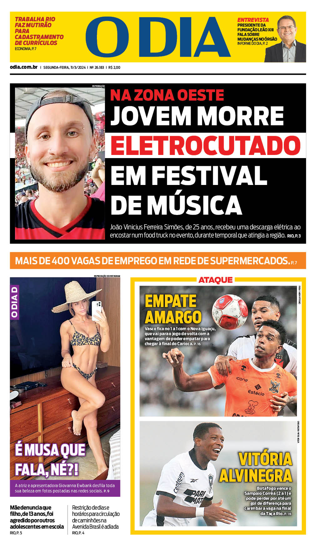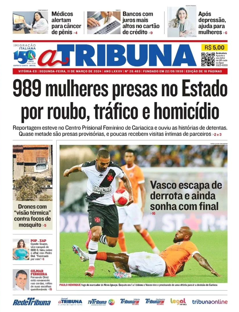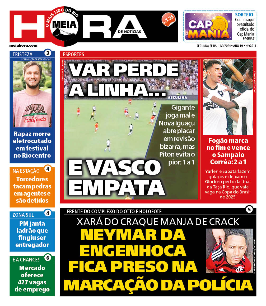 No 1º jogo da semifinal do Carioca, o Vasco empatou com Nova Iguaçu por 1 a 1, gol de Lucas Piton. Veja as capas dos jornais.
