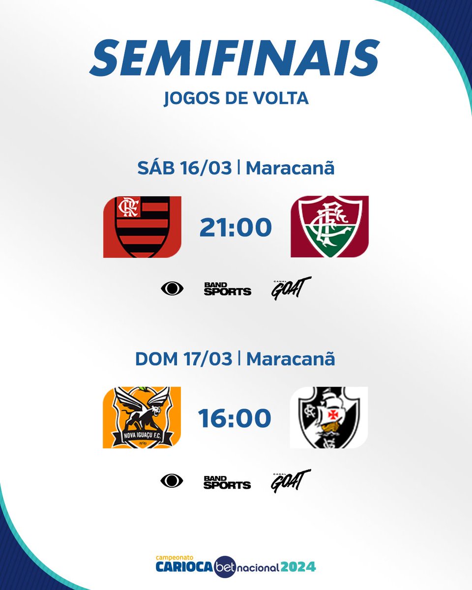 100% ATUALIZADA! As duas semifinais do #CariocaBetNacional serão no Maracanã! 🏟
