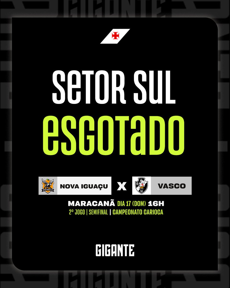 Setor Sul do Maracanã está esgotado para Nova Iguaçu x Vasco