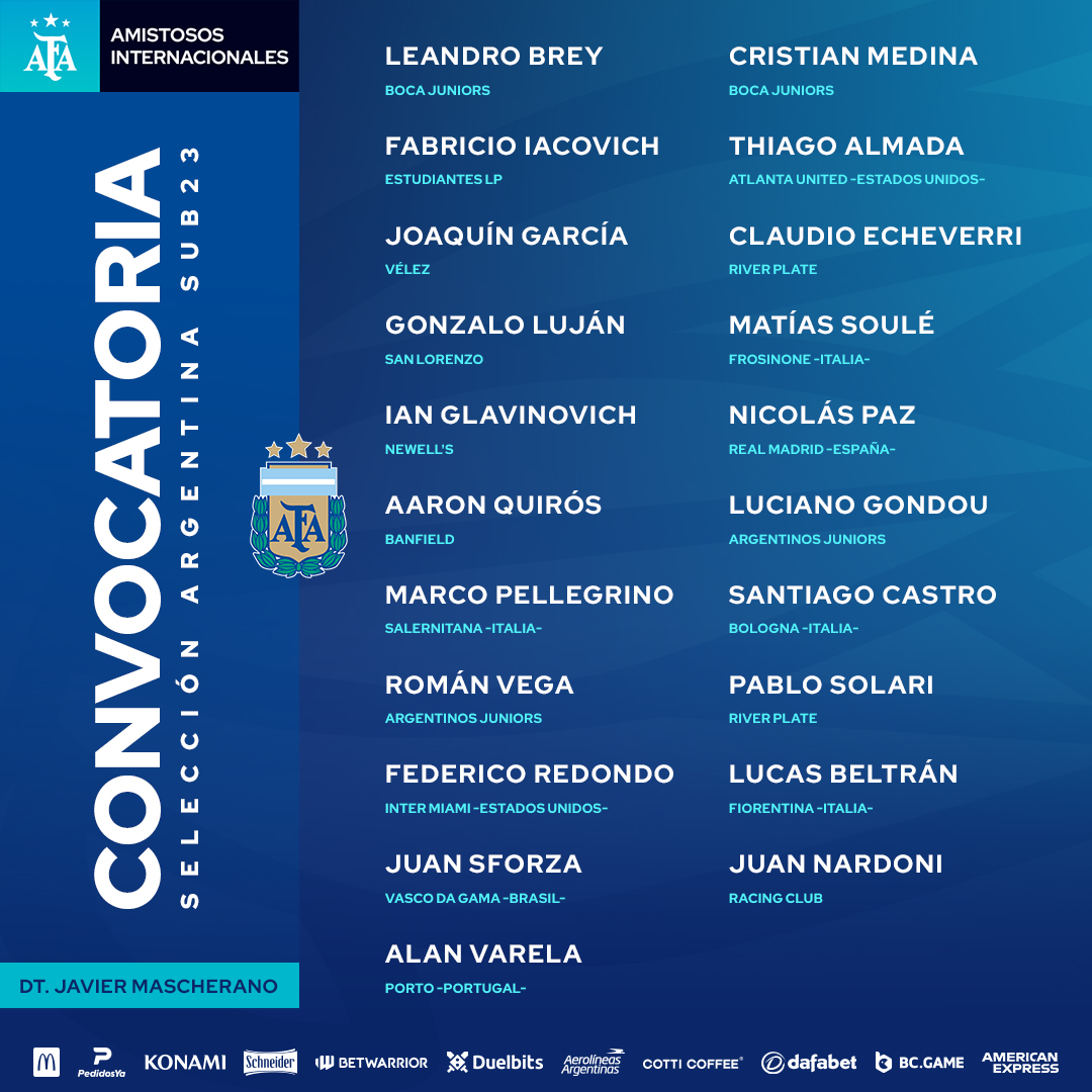 O meia Juan Sforza foi convocado para representar a Seleção Argentina Sub-23 na próxima Data FIFA, no período de 18 e 26 de março.