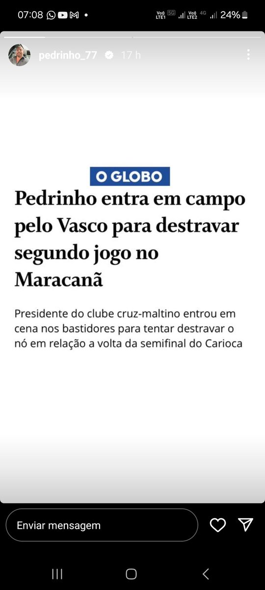 🚨 Após Vasco SAF informar que não recebeu nenhum contato do Vasco Associativo na questão do Maracanã, o Presidente Pedrinho fez essas duas postagens no Instagram: