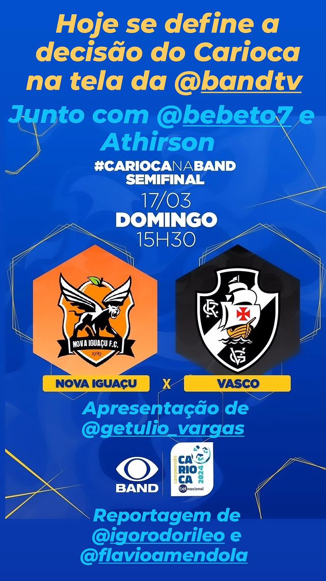 Confira os profissionais que trabalharão na transmissão de Nova Iguaçu x Vasco pela TV e pelo Youtube